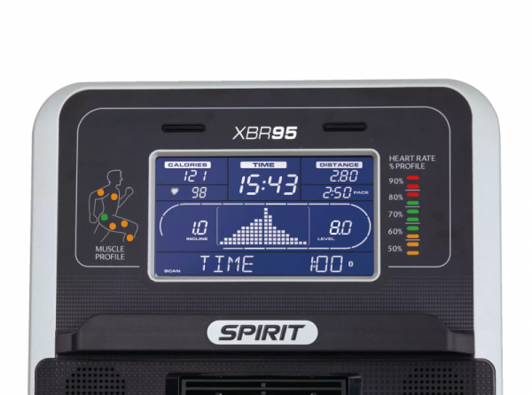 The commercially warranted XBR95 incorporates a cordless generator system for use virtually anywhere. Durable, comfortable, and smooth are all qualities of the Spirit Fitness semi-recumbent bikes. Easy adjustments, bright LCD screens, a cooling fan, and mesh back seats are standard on all models.